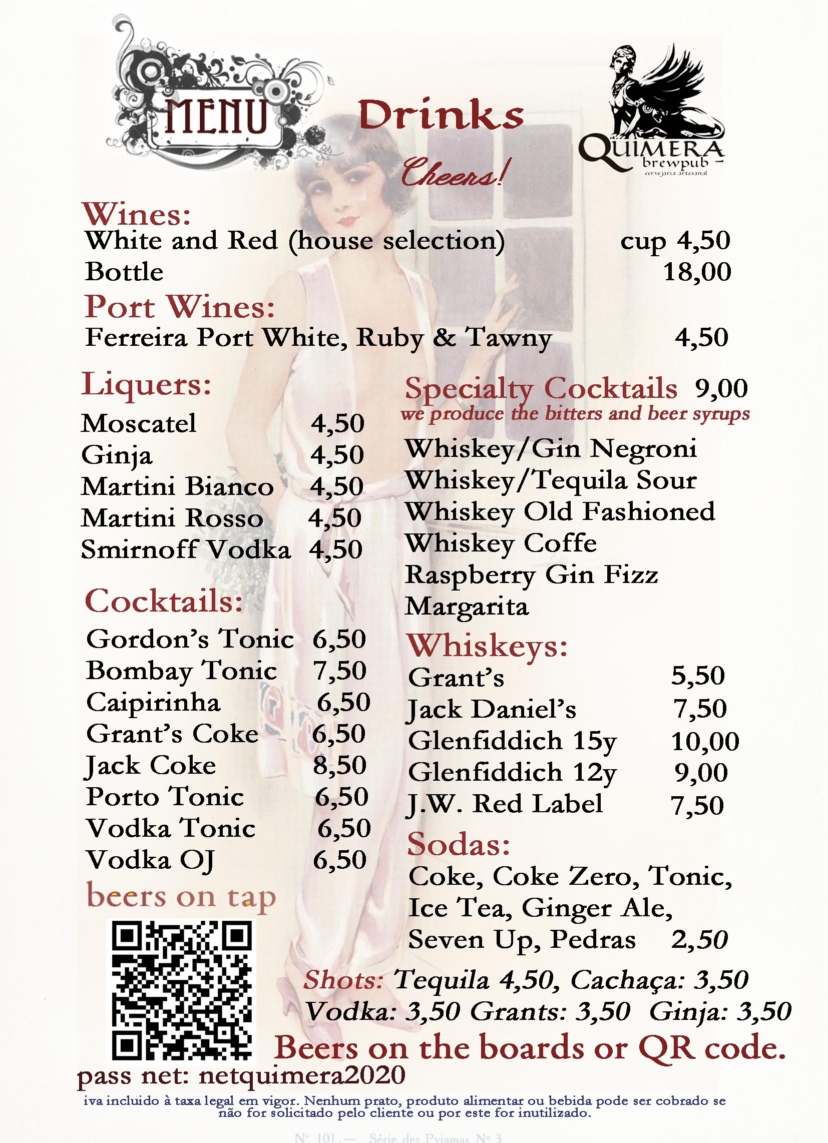 12 taps and bottles of OUR QUIMERA BRAND beers and MENU OF VARIETY OF DRINKS